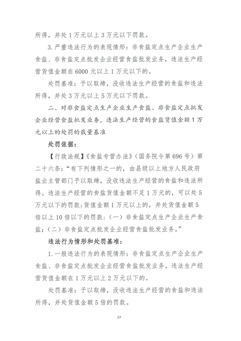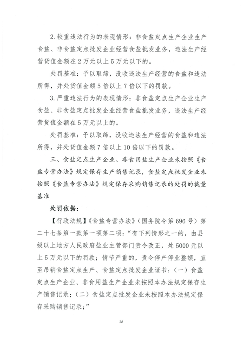 山东省工信厅印发食盐专营领域行政处罚裁量基准