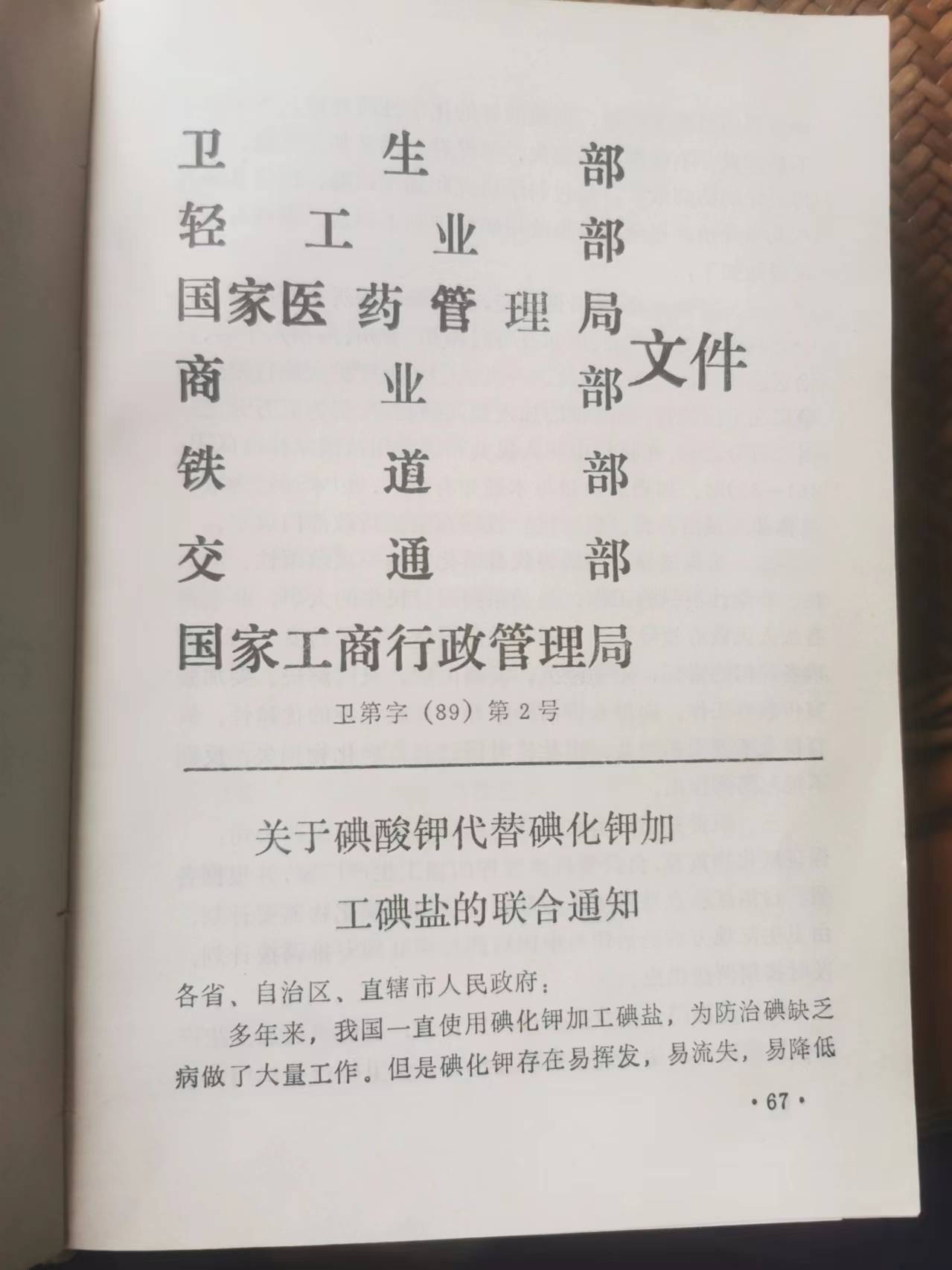 七部门关于碘酸钾代替碘化钾加工碘盐的联合通知