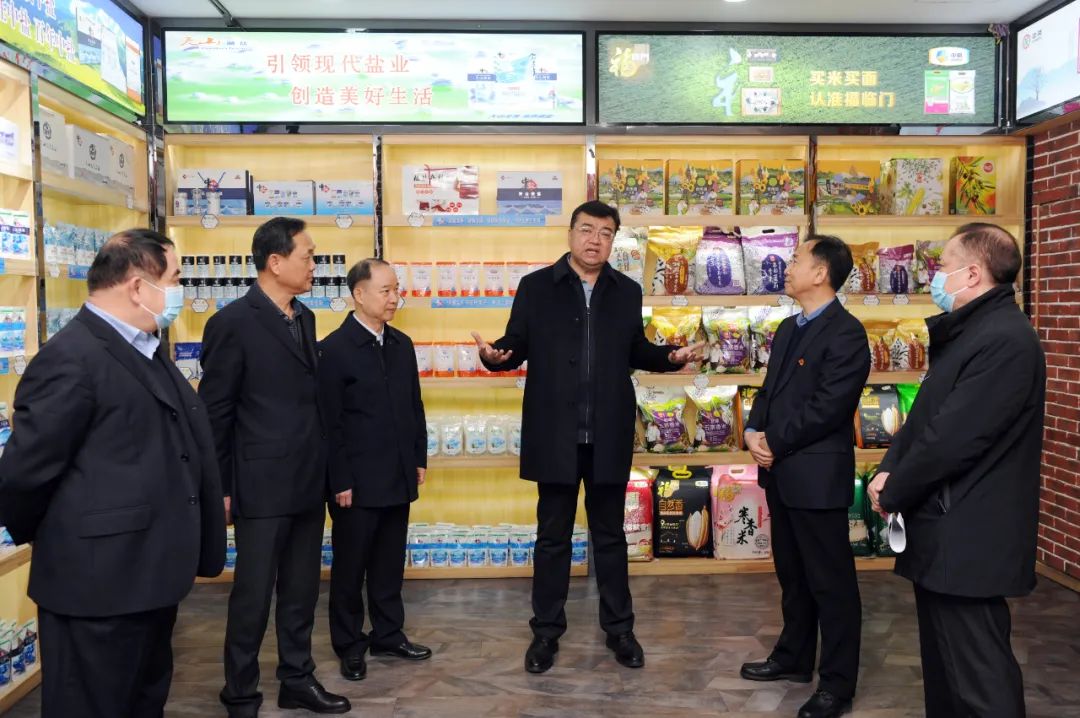 玉苏甫江·麦麦提常委一行听取了中盐新疆公司党委书记、董事长赵卫国工作汇报,详细了解了中盐新疆公司基本情况、企业经济效益、盐业体制改革、存在的问题及下一步工作思路等情况;参观了中盐新疆公司食盐直营店,对天然含硒盐、天山湖盐、天山钙盐、天山低钠盐等系列盐产品特性进行了咨询,并与公司党委书记、董事长赵卫国,党委副书记、总经理葛辉,党委委员、纪委书记吐尔逊·玉素甫,副总经理王勇、慕明鹏进行了现场交流。