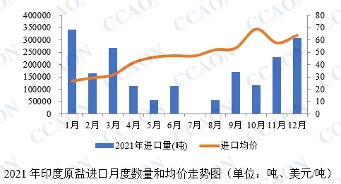 澳大利亚西海岸北部有得天独厚的晒盐条件,是世界少有的天然盐场。生产的全过程机械化和自动化程度较高。大多澳洲各盐厂有自己专用码头,运往世界各地。我国进口澳大利亚原盐的时间较久,进口量占总量的比例也一直较高。印度受疫情及自然灾害影响,出口工业盐一直处于不稳定状态,澳盐在我国市场需求空间提升,2021年我国澳盐进口量位于进口盐首位。