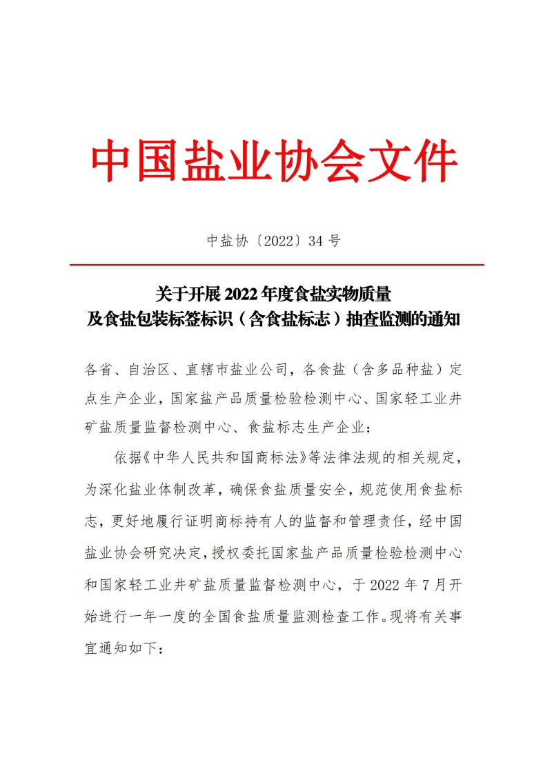 依据《中华人民共和国商标法》等法律法规的相关规定,为深化盐业体制改革,确保食盐质量安全,规范使用食盐标志,更好地履行证明商标持有人的监督和管理责任,经米兰网页版研究决定,授权委托国家盐产品质量检验检测中心和国家轻工业井矿盐质量监督检测中心,于2022年7月开始进行一年一度的全国食盐质量监测检查工作。